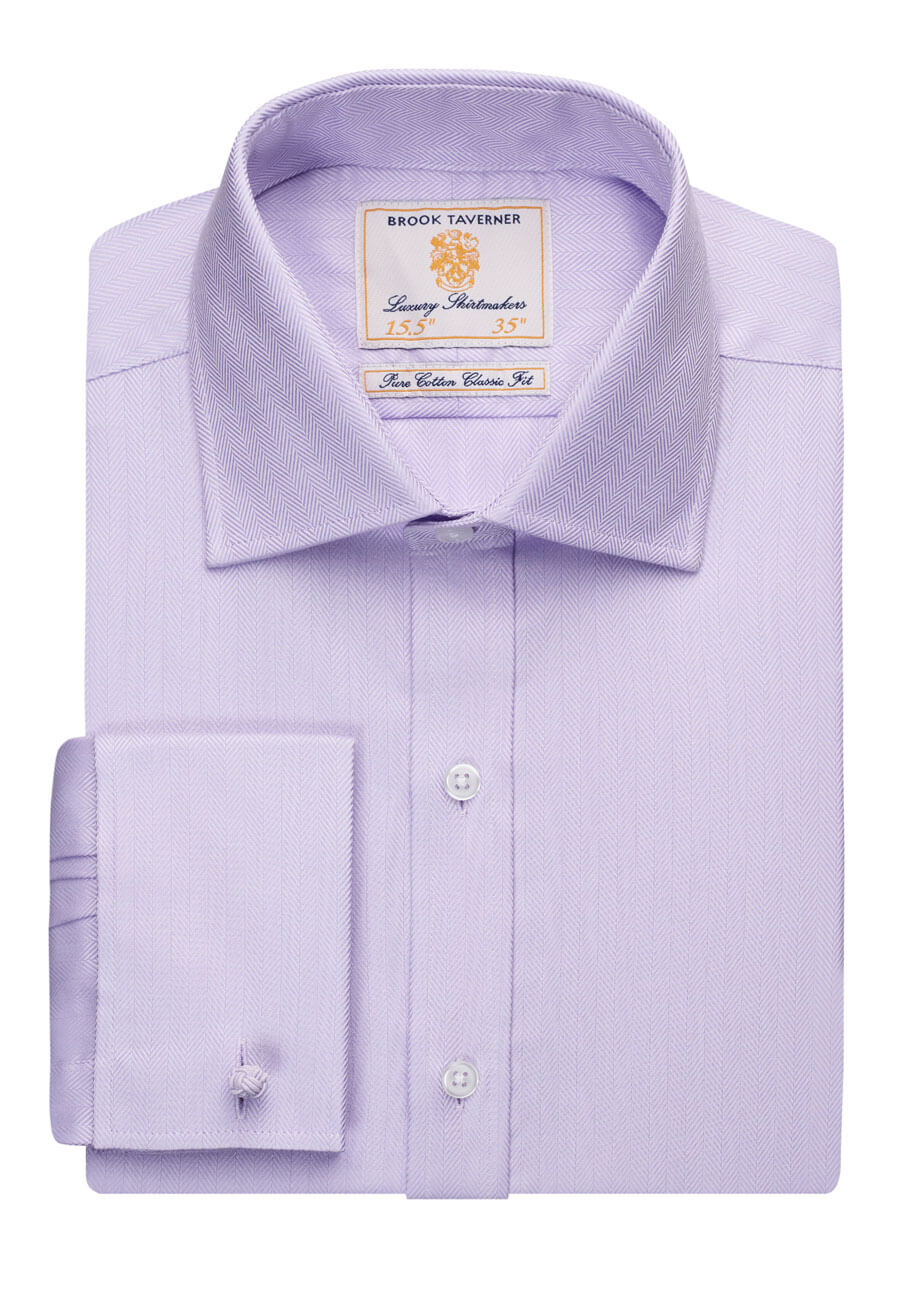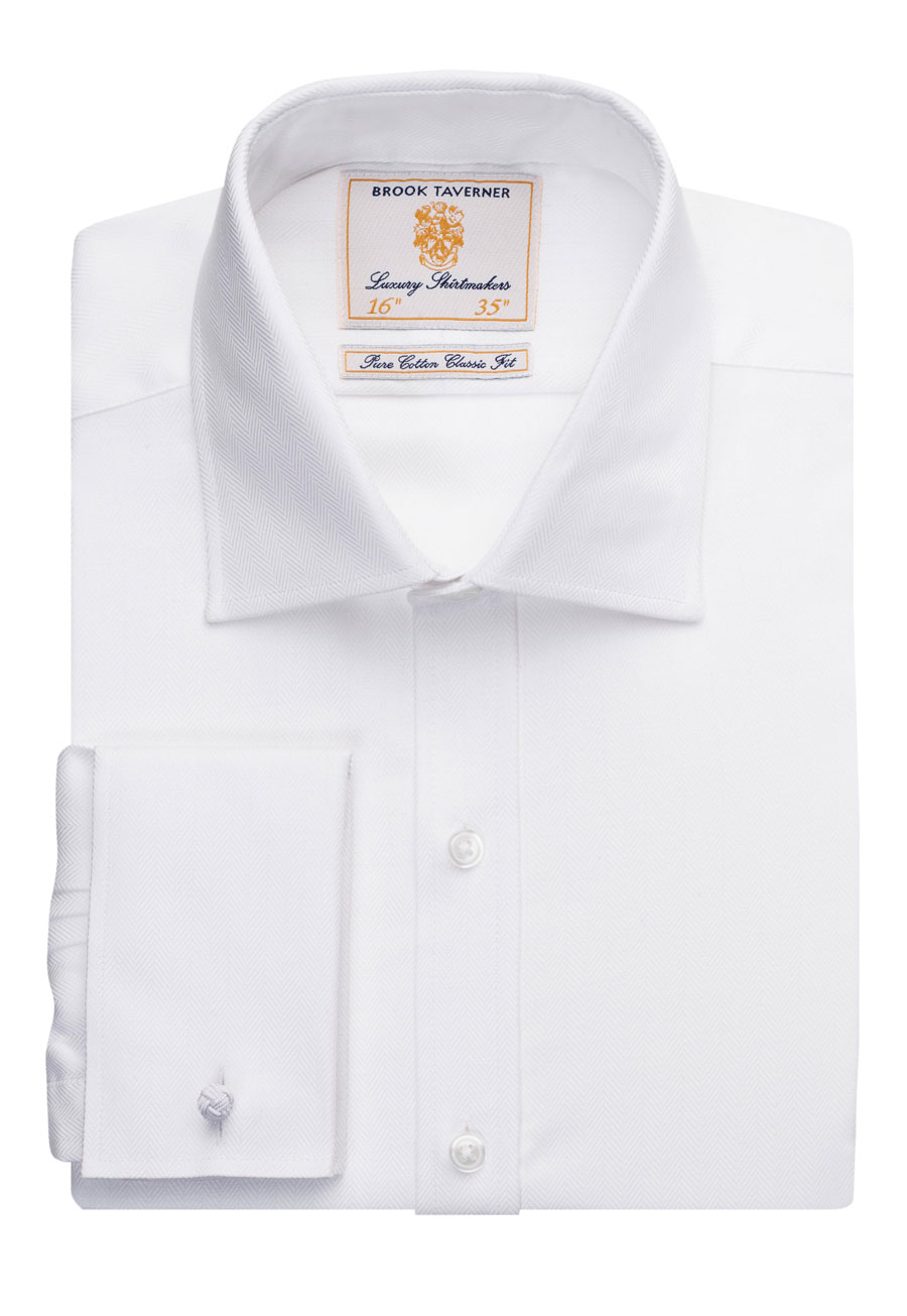 - Tailored from a 100% superfine cotton, easy to iron fabric. Classic fit. Removable metal collar stiffeners, taped seams. Complimentary silk cuff knots. Extra long sleeve 36.5″ available in white herringbone and blue herringbone. Matches ladies’ Villeta and Ozzero blouses.