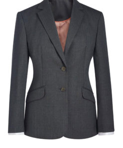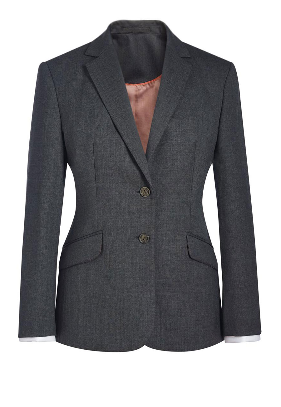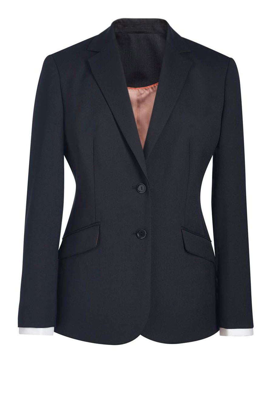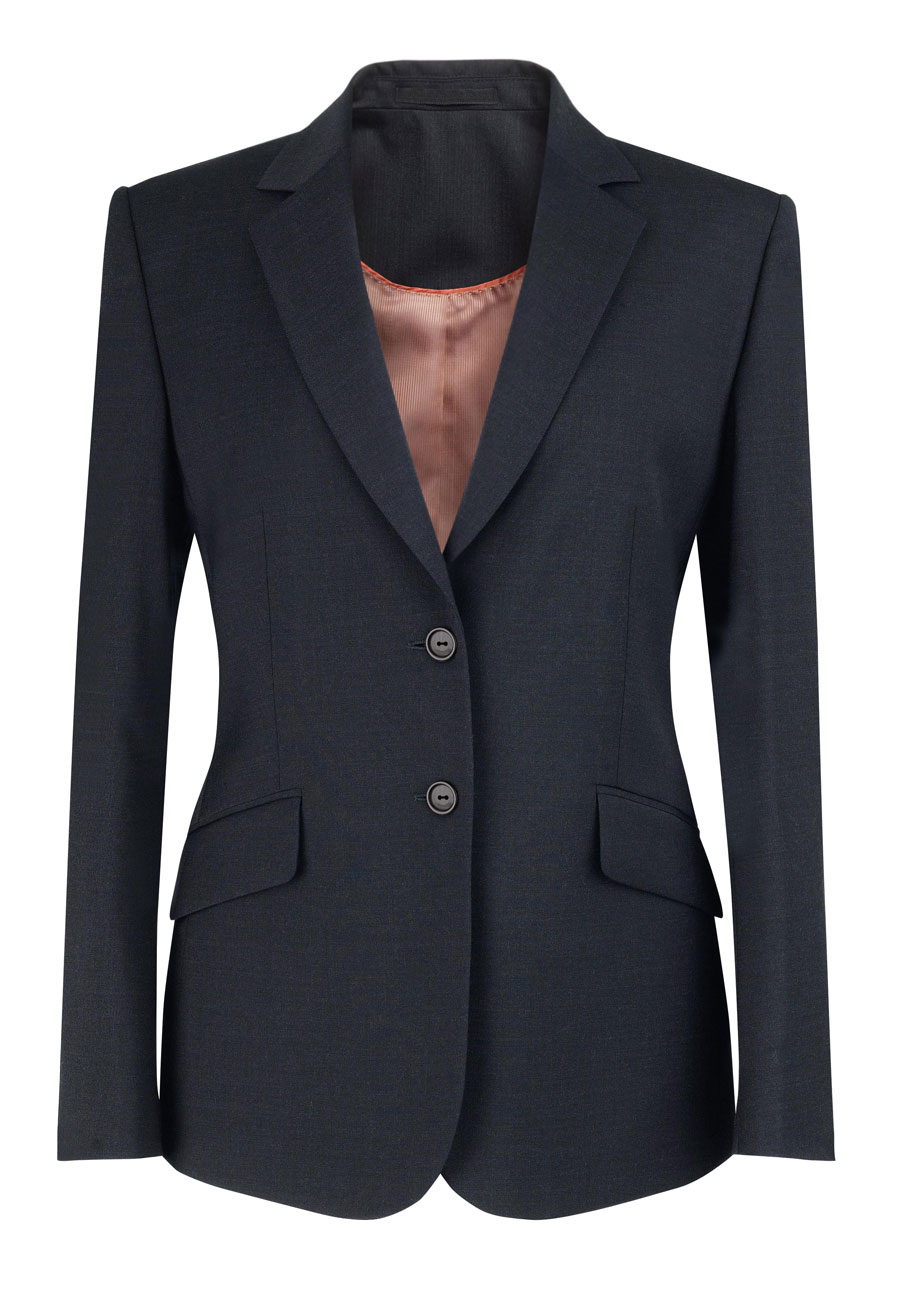 - 2 button classic fit jacket with slanted pocket flaps, 1 inside pocket, centre vent.