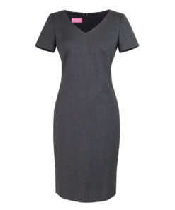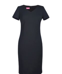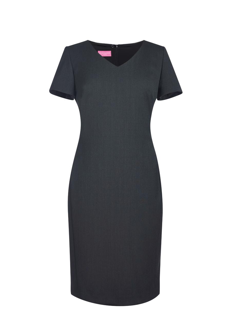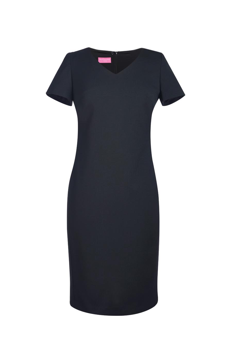 - Beautifully tailored, versatile V-neck dress, short sleeves with vent detail, bust darts, centre vent, full stretch lining