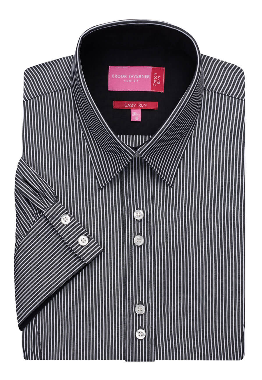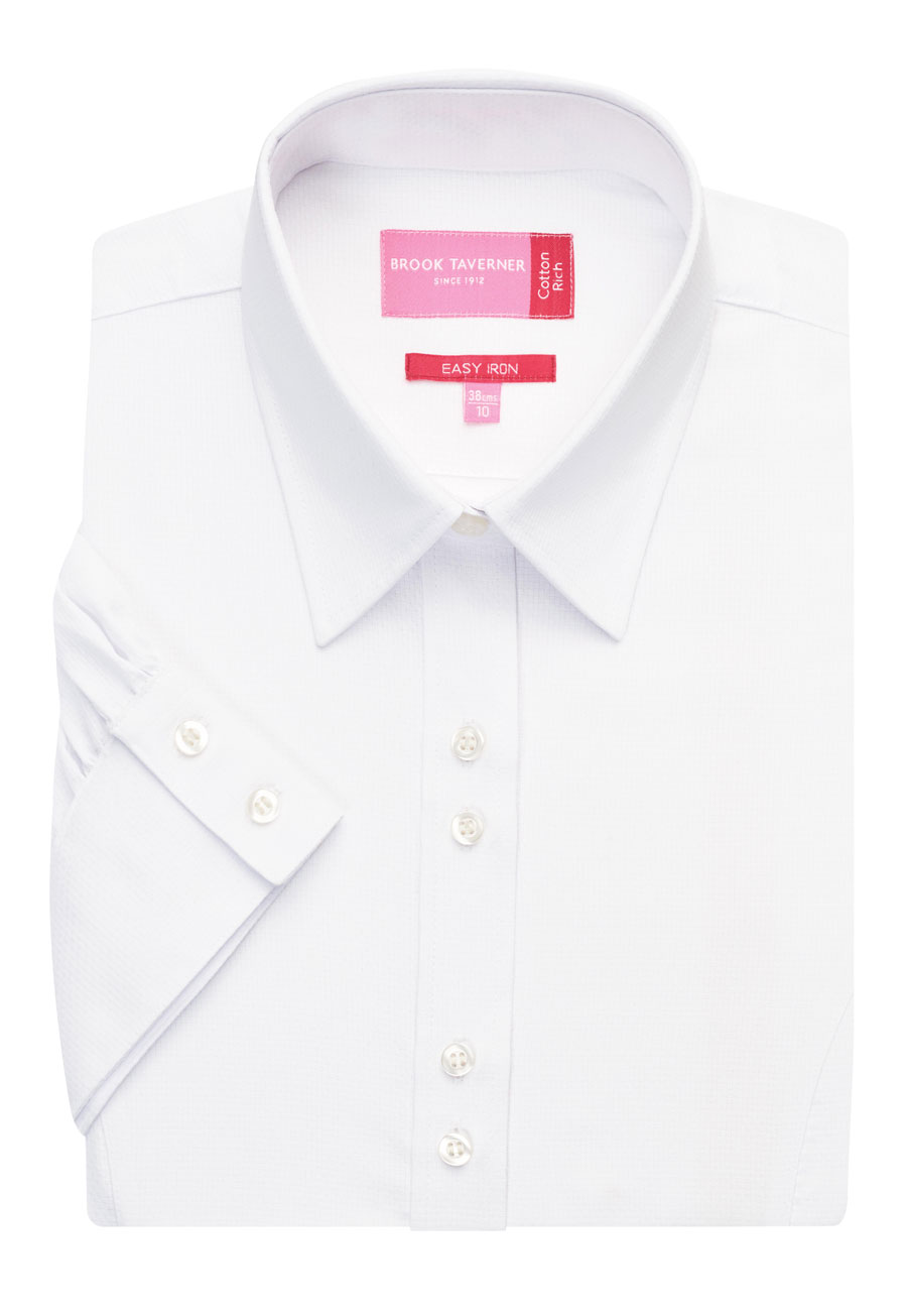 - Cotton rich, flattering fit, contrast inner collar and cuff, double button fastening, short sleeve, matches Campania blouse and Mantova & Savona shirts