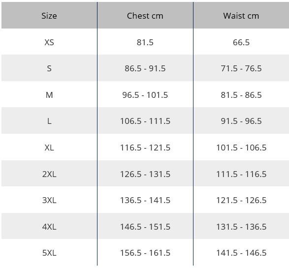 - Sizes 80 – 140cm chest