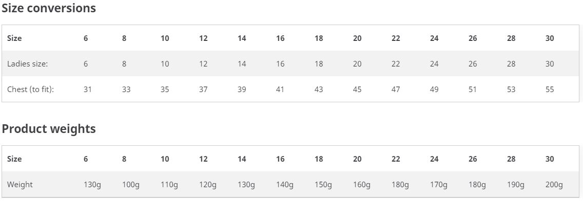 Premier Ladies Short Sleeve Poplin Blouse Size Guide
