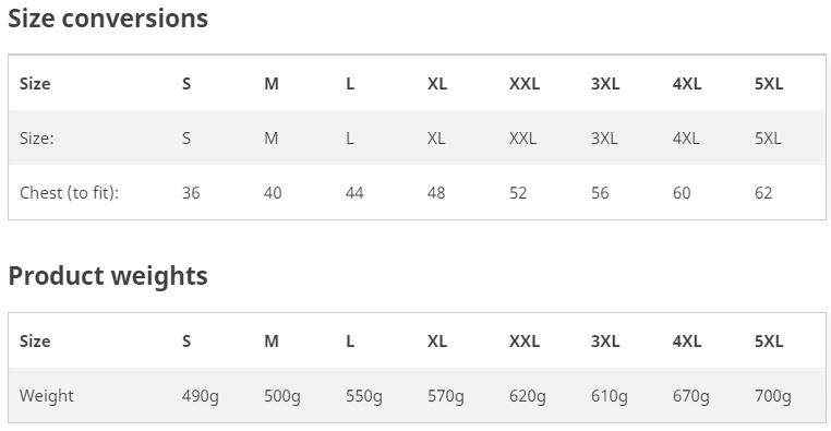 Pro Two Layer Soft Shell Jacket Size Guide