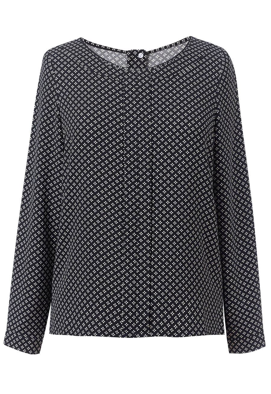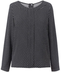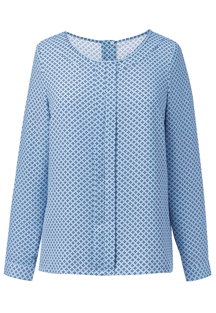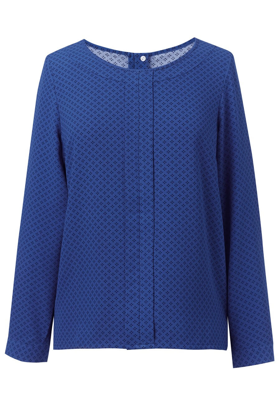 - Long sleeve ladies’ blouse, round neck, front pleat detail, bust darts, single gold button cuff, rear gold zip detail, easy care – machine washable at 30 degrees