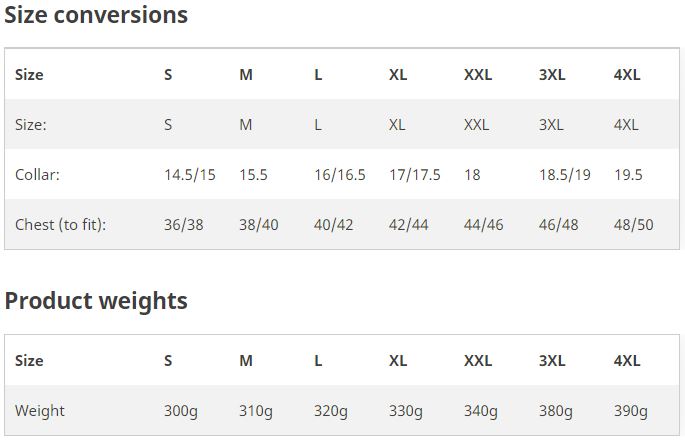 Russell Collection Men's Long Sleeve Shirt Size Guide