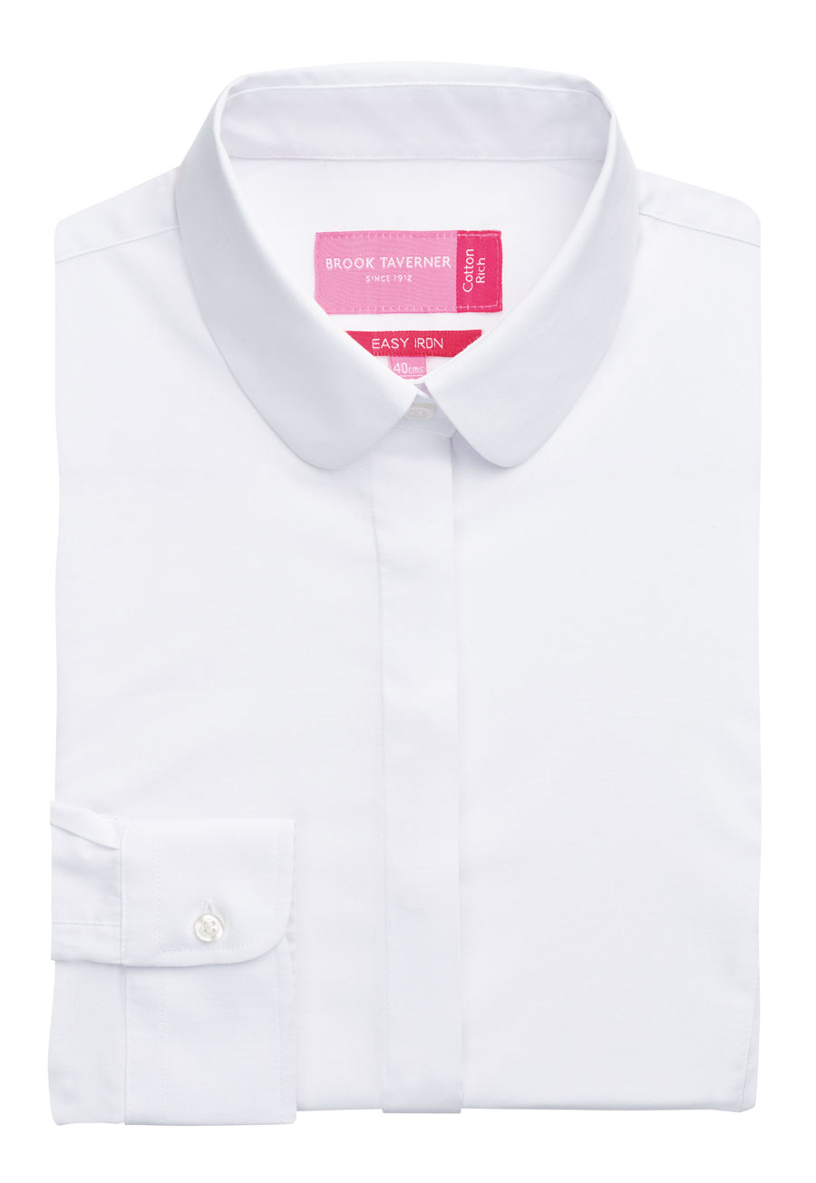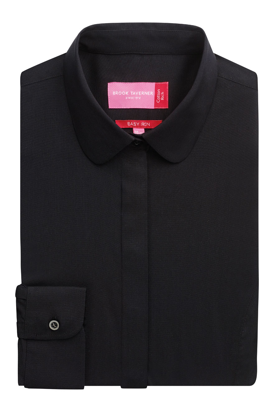 - Semi fitted women’s blouse with rounded collar, Fly front, single button cuff, Superb stretch fabric, easy to iron